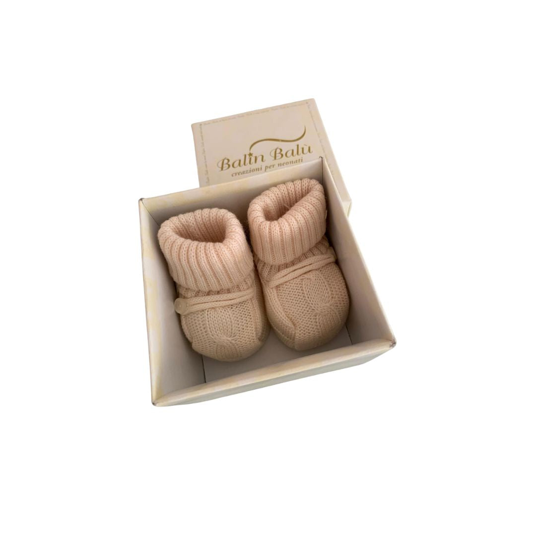 Le scarpette sono realizzate in maglia di pura lana merinos extra fine ed in 4 magnifici colori ( panna, rosa, cielo e rosso).
